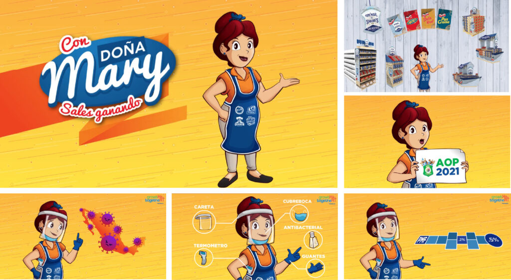 Animación de personaje previamente diseñado, interpretación por parte actriz de voz, grabación de locución, lip sync de personaje y animación explicativa sobre temas dirigidos a los mayoristas.