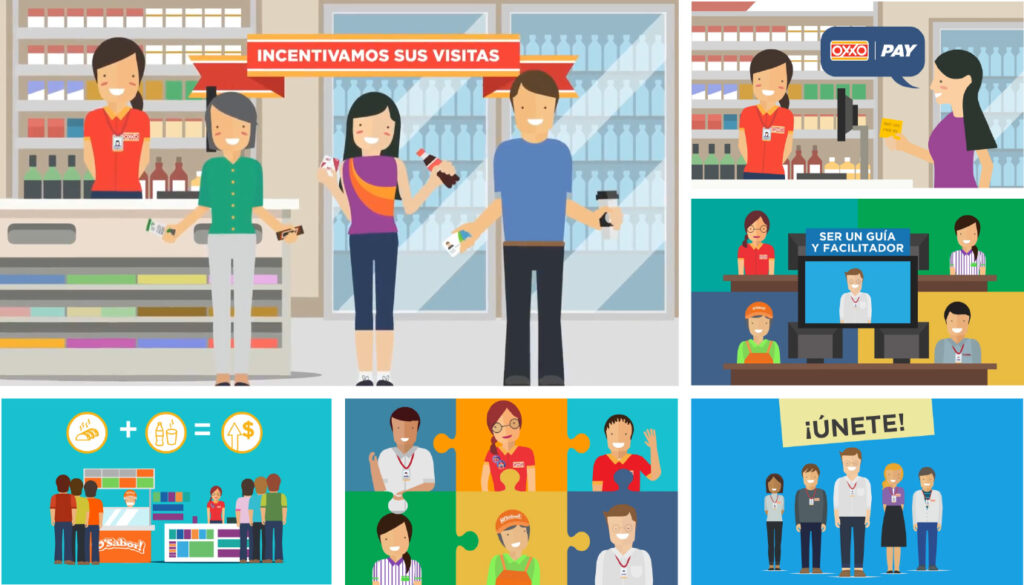 Videos animados para capacitación interna de cajeros del Oxxo, así como videos explicativos de temas relevantes, nuevas implementaciones y campañas internas en general.